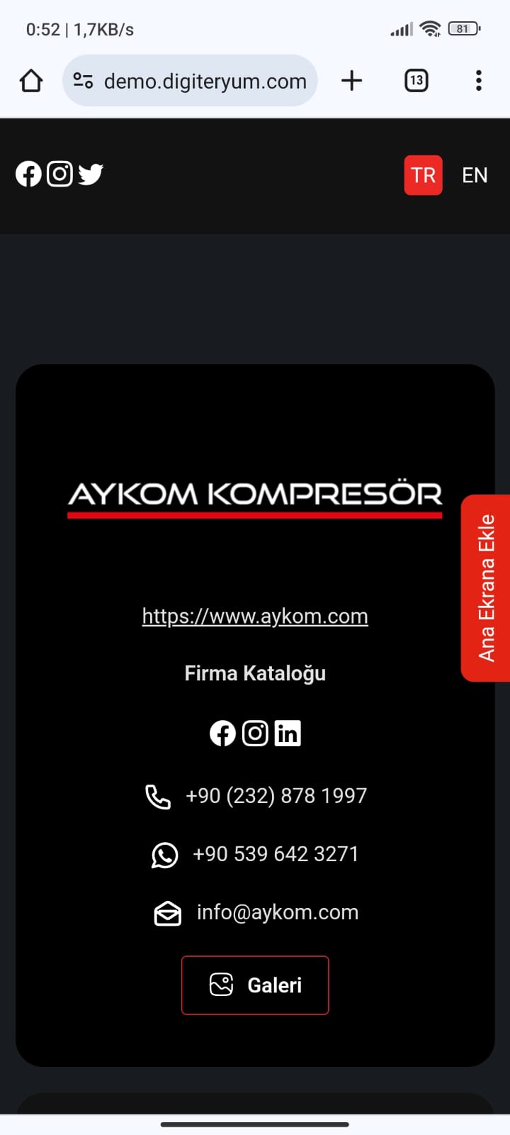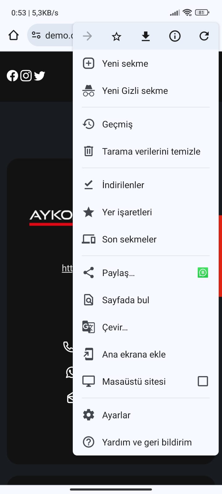Üç noktaya tıkladıktan sonra açılan kısımda Ana Ekrana Ekle butonuna tıklayınız.